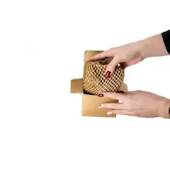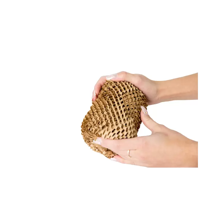 Il suffit de dérouler le papier de calage en l'étirant, celui-ci se transforme en cellules hexagonales très protectrices pour l'emballage de vos produits.