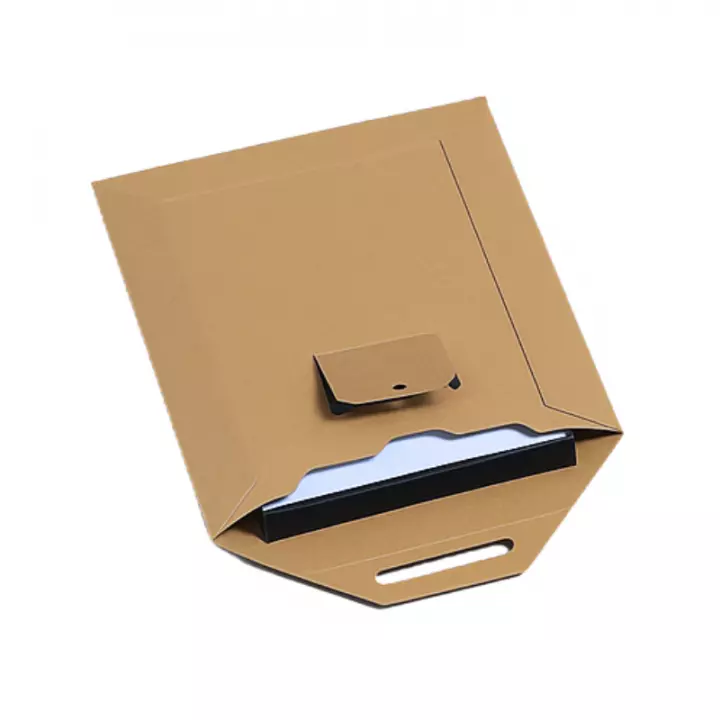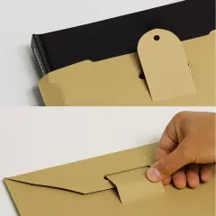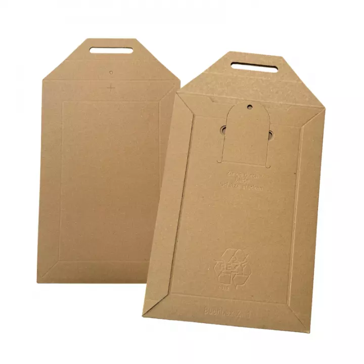La pochettes en carton BBXZ en kraft brun 100 % recyclé (450–500 g/m²), dotée d’une fermeture à languette zungen‑steck et rainures adaptables à des contenus jusqu’à 35 mm d’épaisseur. Plus solide et économique que les pochettes kraft ou boîtes rigides, elle optimise vos coûts de stockage et d’envoi, tout en étant réutilisable et 100 % recyclable.