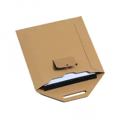 L'enveloppe-carton BBXZ est une alternative écologique aux bandes autocollantes ou plastifiées car elle est dotée fermeture mécanique composé d'une languette cartonnée que l'on insère dans une fente prédécoupée.