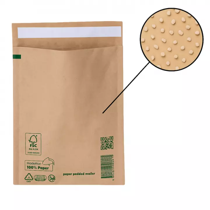 Cette enveloppe matelassée est une alternative durable aux enveloppes bulles traditionnelles. Fabriquée entièrement en papier recyclé certifié FSC®, elle est adaptée à l’expédition d’objets fragiles tout en respectant l’environnement.
