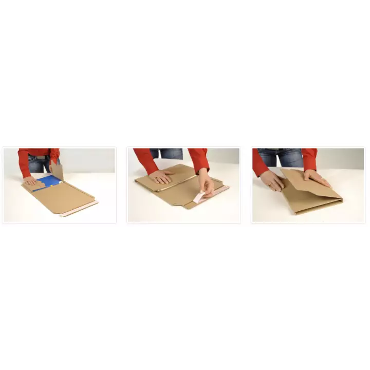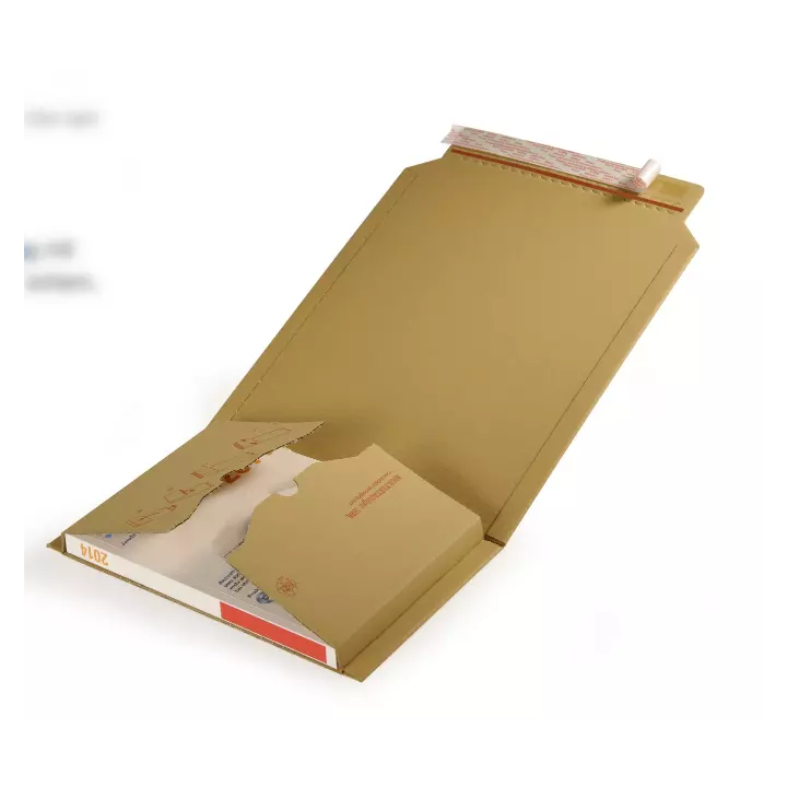 Facilité d'utilisation grâce à un remplissage latéral pratique, un processus de pliage facile et une fermeture autocollante pour un conditionnement sans souci. Ouverture sécurisée et aisée grâce à une bande de déchirure munie d'une perforation spéciale. Aucun besoin de matériau de remplissage supplémentaire, ce qui signifie moins de tracas pour vous. Flexibilité maximale grâce à la possibilité d'ajuster la hauteur de remplissage en fonction de vos besoins. Protection renforcée avec des bords doublés tout autour pour assurer la sécurité de vos articles. Adapté non seulement pour les livres, mais également pour une variété de produits plats tels que l'électronique, les supports de données, les médias et les textiles. MATÉRIAU ÉCOLOGIQUE :
