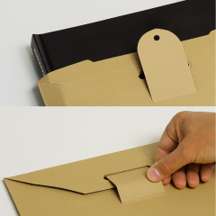 L'enveloppe-carton BBXZ est une alternative écologique aux bandes autocollantes ou plastifiées car elle est dotée fermeture mécanique composé d'une languette cartonnée que l'on insère dans une fente prédécoupée.