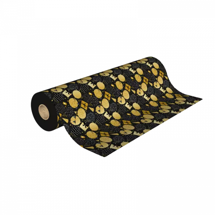 Papier emballage cadeau 70cm x 50m FÊTE BALLON NOIR OR 60g (7469 H)